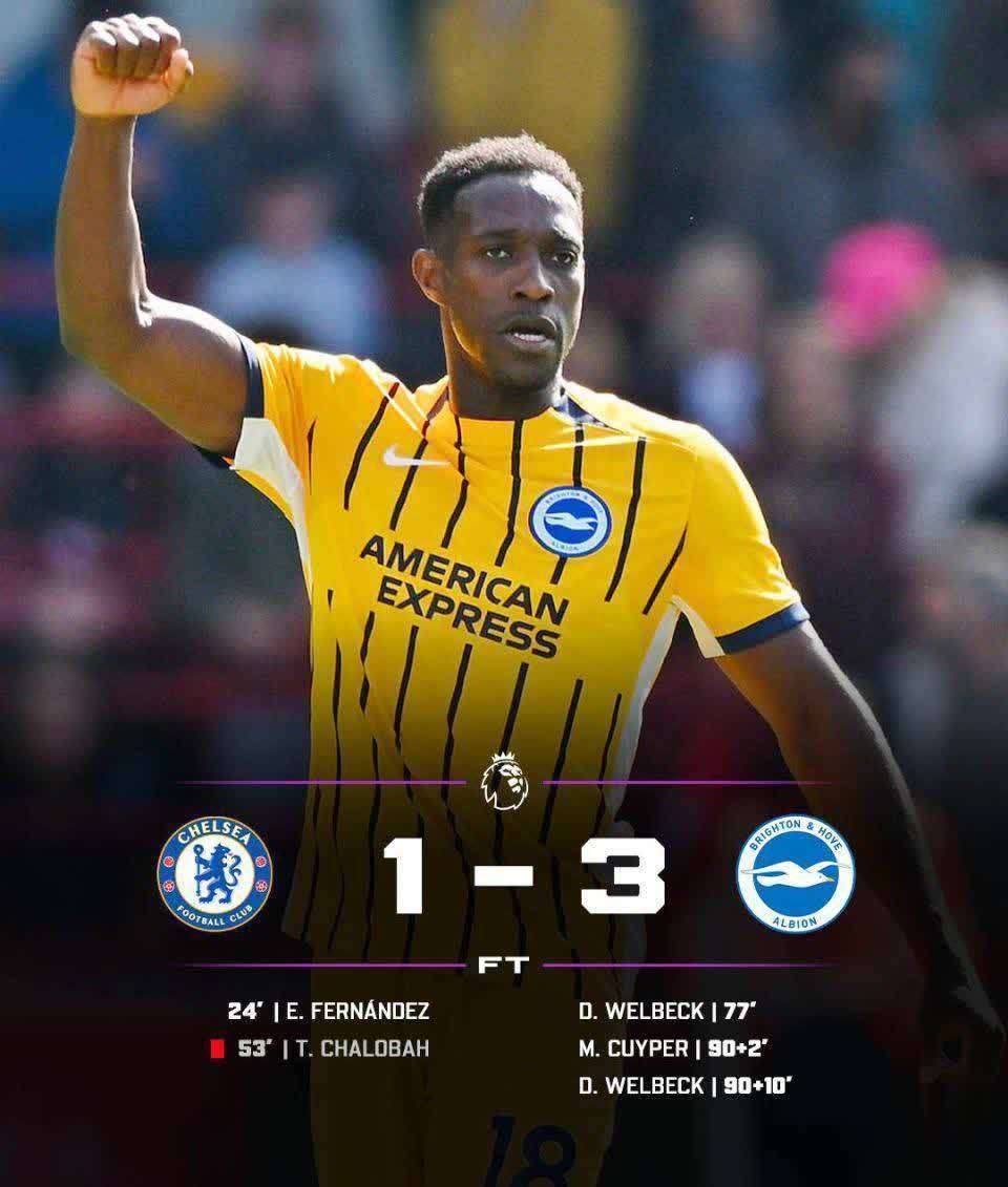 斯坦福桥的球迷再次心碎,恩佐的头球破门一度让蓝军看到希望。但查洛巴的红牌成为转折点,少打一人的切尔西在最后时刻。前曼联球员维尔贝克梅开二度,加上德克伊珀的制胜球,布莱顿完成3-1逆转。值得一提的是,这已经是海鸥军团连续第三次击败切尔西。