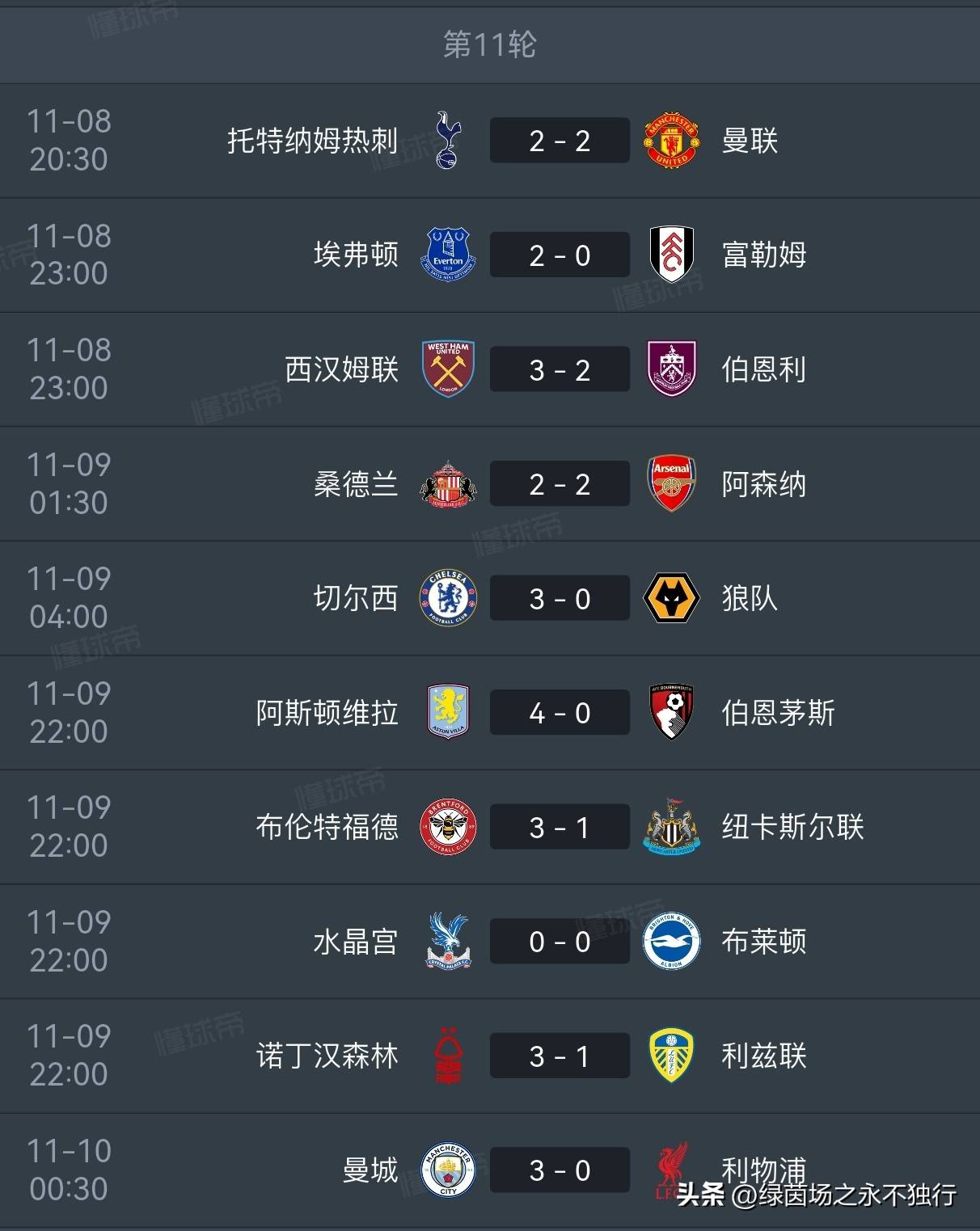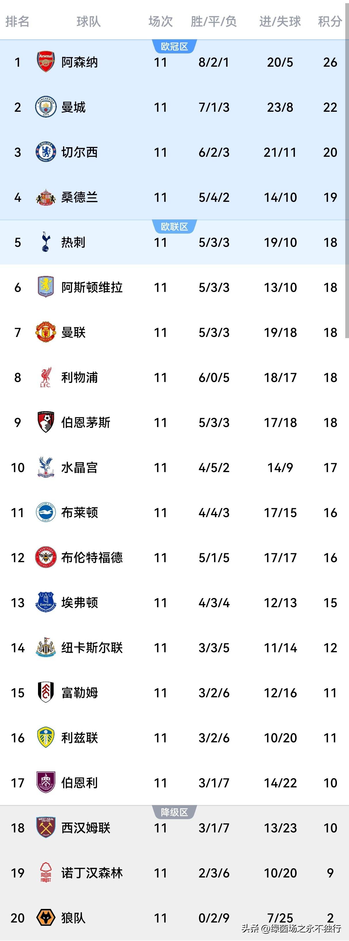 英超直播,英超赛程,英超积分榜,英超比分预测,曼联利物浦直播/覆盖2025年英超联赛所有比赛,提供免费高清中文直播入口、最新赛程安排、实时积分榜、比分预测与波胆分析,聚焦曼联、利物浦、曼城、阿森纳等豪门动态。英超第11轮的比赛全部结束,最后一场焦点大战中曼城主场3-0击败利物浦,在积分榜上将和阿森纳的差距缩小为4分。
