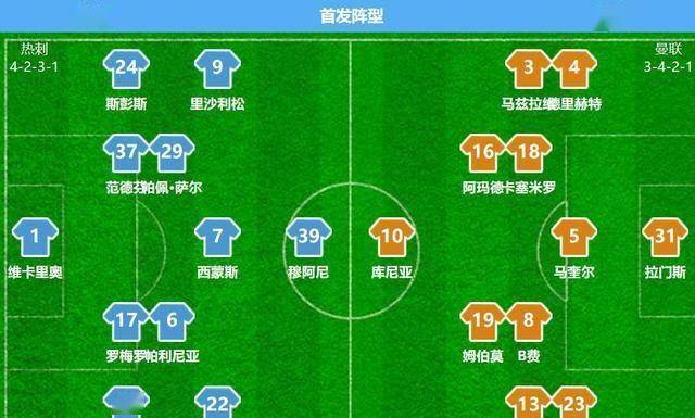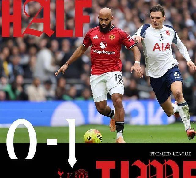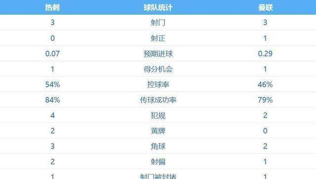 上半场结束时,曼联1-0领先。从数据来看,两队射门次数都是3次,但曼联把握住了关键机会。 热刺在控球率上稍占优势,但真正有威胁的进攻并不多。