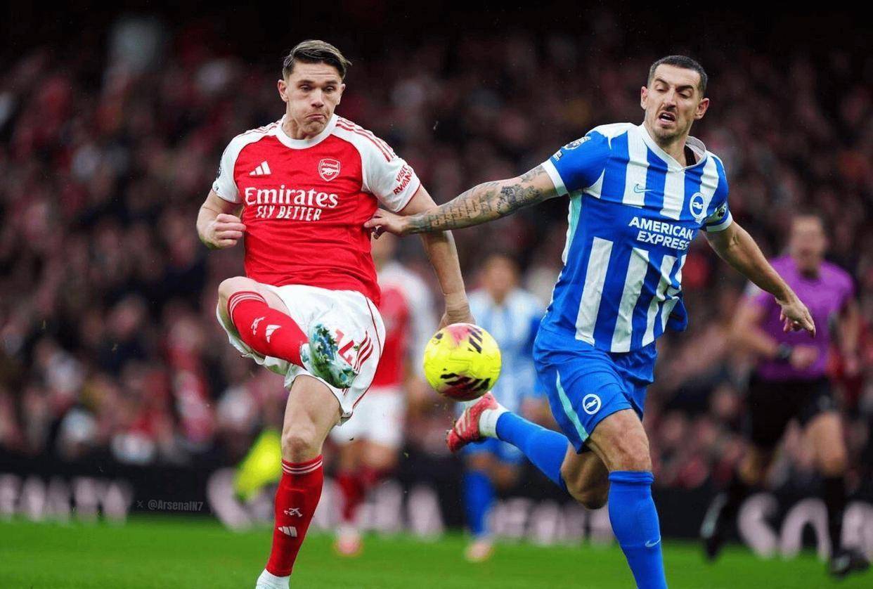 打破僵局的还是阿森纳的看家本领。第52分钟,德克兰·赖斯开出左侧角球,皮球划过一道弧线飞向门前,布莱顿后卫试图解围却不慎将球碰进了自家大门。 这个乌龙球让阿森纳取得了两球领先的优势。 落后的布莱顿这才加大了进攻力度,比赛尾声阶段,他们的努力收到效果,若昂·戈麦斯抓住机会扳回一城。 最后阶段,阿森纳全队众志成城,顶住了对手的反扑,将2-1的比分保持到了终场。 这场胜利让阿森纳的积分达到了42分。