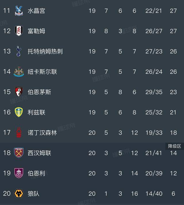 英超直播,英超赛程,英超积分榜,英超比分预测,曼联利物浦直播/覆盖2025年英超联赛所有比赛,提供免费高清中文直播入口、最新赛程安排、实时积分榜、比分预测与波胆分析,聚焦曼联、利物浦、曼城、阿森纳等豪门动态。英超联赛第20轮今晚进行,在三场保级大战中,狼队主场3:0大胜西汉姆联,终于拿到赛季首胜,虽然依然排在垫底位置,不过缩小了与保级区的差距,西汉姆联则是连续9轮不胜,依然排名倒数第三。布莱顿主场2:0击败伯恩利,6轮不胜被终结,升至积分榜第位,另外送伯恩利11轮不胜。另外一场比赛,维拉主场3:1击败诺丁汉森林,先赛情况下攀升至积分榜第二亚,并且送给诺丁汉森林四连败。