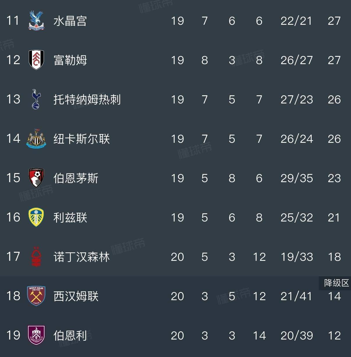 利物浦33分位列第四,与榜首差距已达15分,争冠希望渺茫。 保级区中,狼队6分垫底,伯恩利12分、西汉姆联14分深陷降级区,诺丁汉森林18分仅高出降级区4分,保级警报持续拉响。
