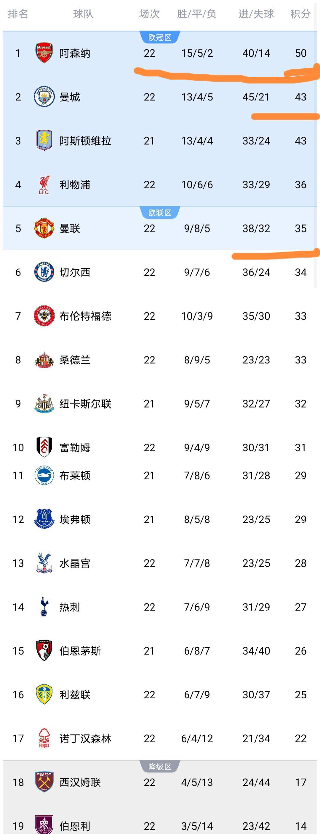 英超直播,英超赛程,英超积分榜,英超比分预测,曼联利物浦直播/覆盖2025年英超联赛所有比赛,提供免费高清中文直播入口、最新赛程安排、实时积分榜、比分预测与波胆分析,聚焦曼联、利物浦、曼城、阿森纳等豪门动态。昨晚至今晨,英超第22轮多场比赛相继落幕,曼城、曼联、阿森纳等豪强悉数出战,赛后英超积分榜发生了显著变化。我们深入分析这些赛事结果所带来的格局变动。