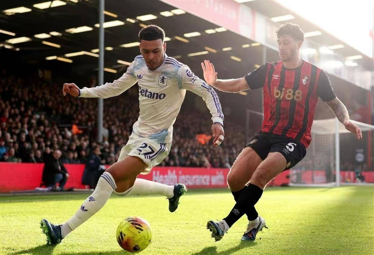 再看另一场关乎前四的比赛,阿斯顿维拉客场挑战伯恩茅斯。 维拉这赛季本来是黑马,可最近有点掉链子。 开场伯恩茅斯就猛攻,维拉门将大马丁成了最忙的人,高接低挡,扑了克鲁皮的单刀,又挡了埃瓦尼尔森的劲射,甚至队友孔萨还在门线上解围了一次。 顶过这波,维拉反而先进球了。 第34分钟,桑乔没错,就是从曼联租借过来的那个桑乔送出一记直塞,罗杰斯突入禁区小角度爆射得手,0-1。