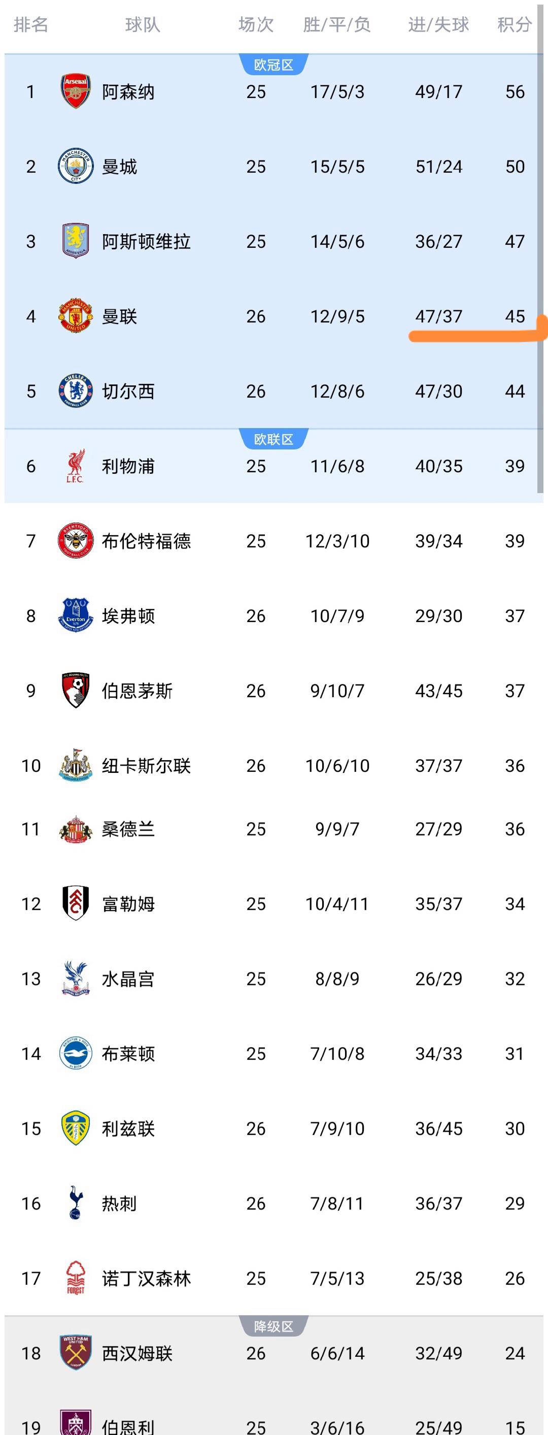 英超直播,英超赛程,英超积分榜,英超比分预测,曼联利物浦直播/覆盖2025年英超联赛所有比赛,提供免费高清中文直播入口、最新赛程安排、实时积分榜、比分预测与波胆分析,聚焦曼联、利物浦、曼城、阿森纳等豪门动态。今天凌晨,英超第26轮的4场比赛全部结束,曼联、切尔西、热刺等多支劲旅均有出场。经过这几场激烈较量后,英超积分榜发生了新的变化,让我们具体来解读一下最新动态。