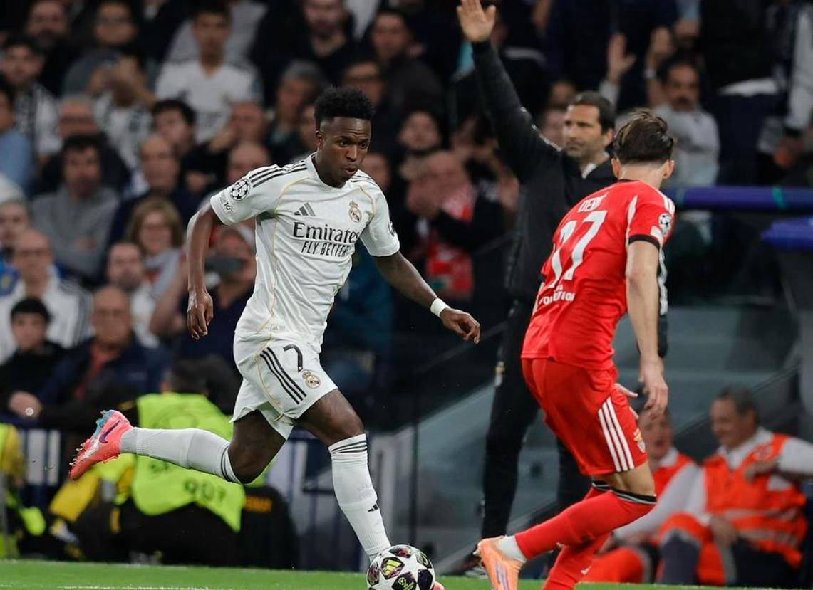 比赛开局皇马遭遇打击,第15分钟由于阿森西奥的铲球失误,不小心将球送向自家禁区,导致拉法-席尔瓦抓住门前机会补射破门,皇马先失一球。虽然后续库尔图瓦奋力扑救,避免乌龙发生,但比分被改写为0-1。幸好楚阿梅尼迅速站出来帮助皇马扳平局势,将比赛重新拉回均势。此后,本菲卡多次制造威胁,却未能转化为进球。直到第80分钟,维尼修斯发挥英雄本色,打入制胜一球,终结比赛悬念。这也是维尼修斯近5场欧冠比赛中的第6粒进球,状态极其火热。