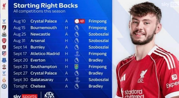 值得注意的是,利物浦本赛季右后卫位置的不稳定,也成为了赛后讨论的焦点。据天空体育的数据统计,本赛季至今,利物浦没有任何一位右后卫能够连续首发四场比赛。像对阵水晶宫、伯恩茅斯等比赛,首发右后卫一直在轮换,而在这场对阵切尔西的比赛中,布拉德利成为了利物浦的首发右后卫。这种人员的频繁变动,或许也影响了球队整体防线的稳定性。