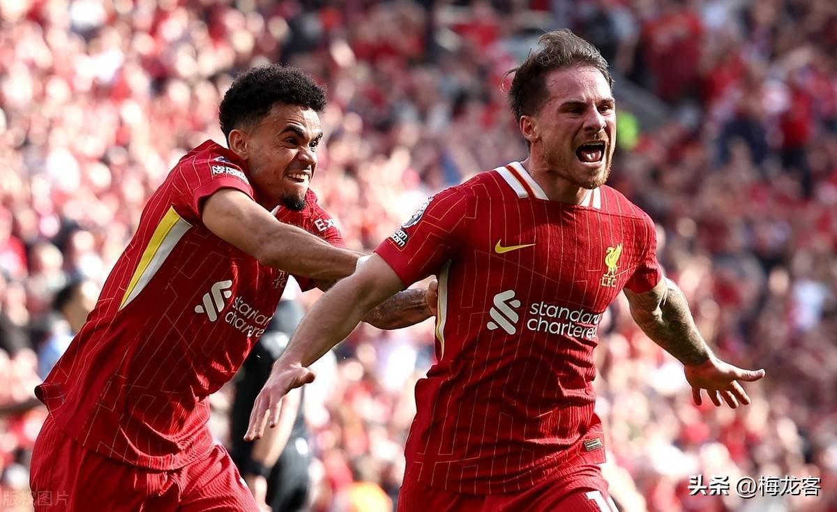 接下来的比赛中,利物浦的进攻如同开闸洪水般,全速展开。第24分钟,格拉芬贝赫在前场进行抢断,麦卡利斯特在禁区外左脚怒射,皮球直挂球门右上角,利物浦以2-1实现反超!34分钟,加克波在右侧角球混战中灵活转身抽射,一下子将比分扩大到3-1!